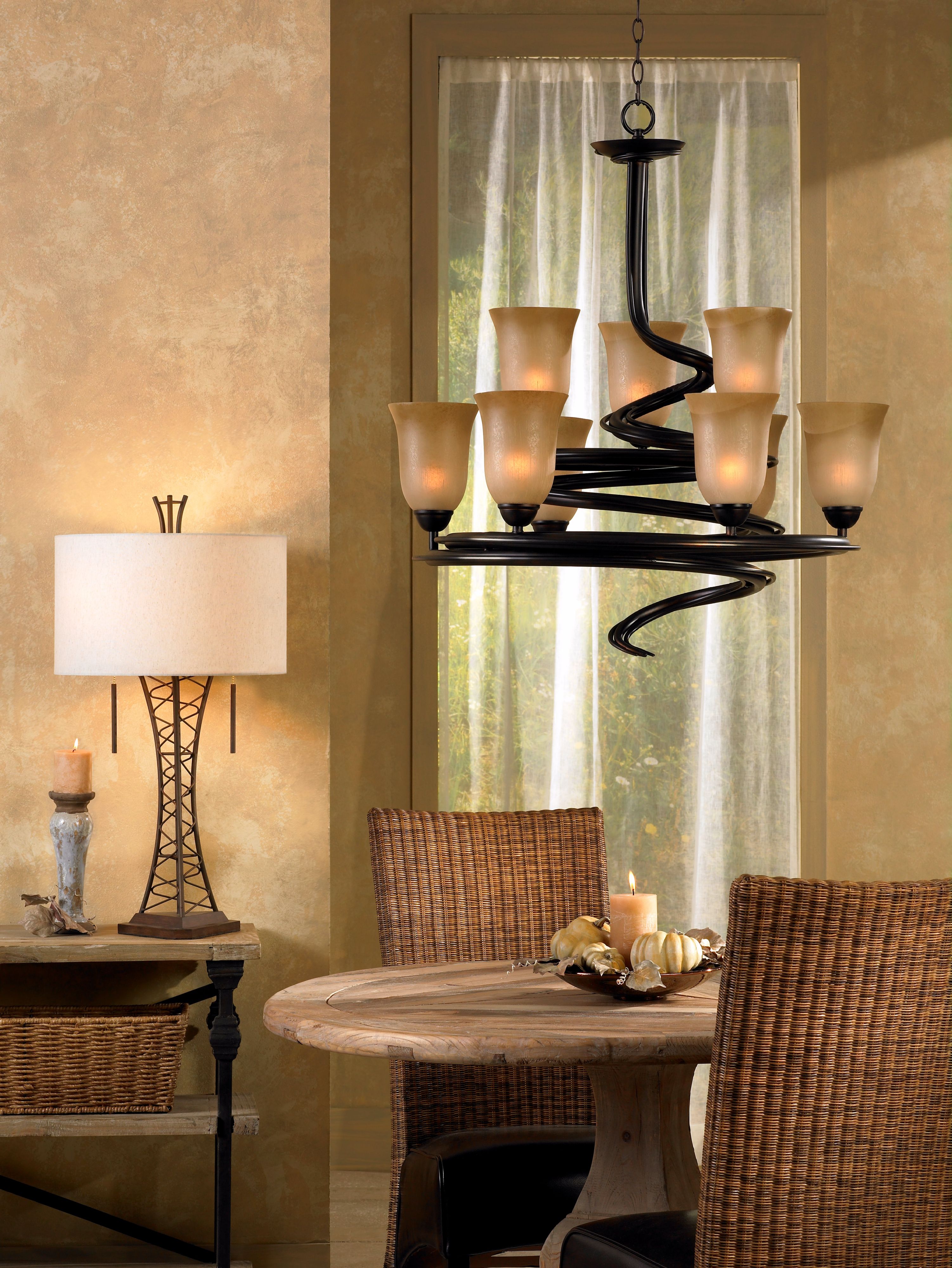 Find tips for selecting the right size. Chandelier with ceiling fan attached. These chandeliers might fit best in a dining room setting. Next, identify the location for the light.